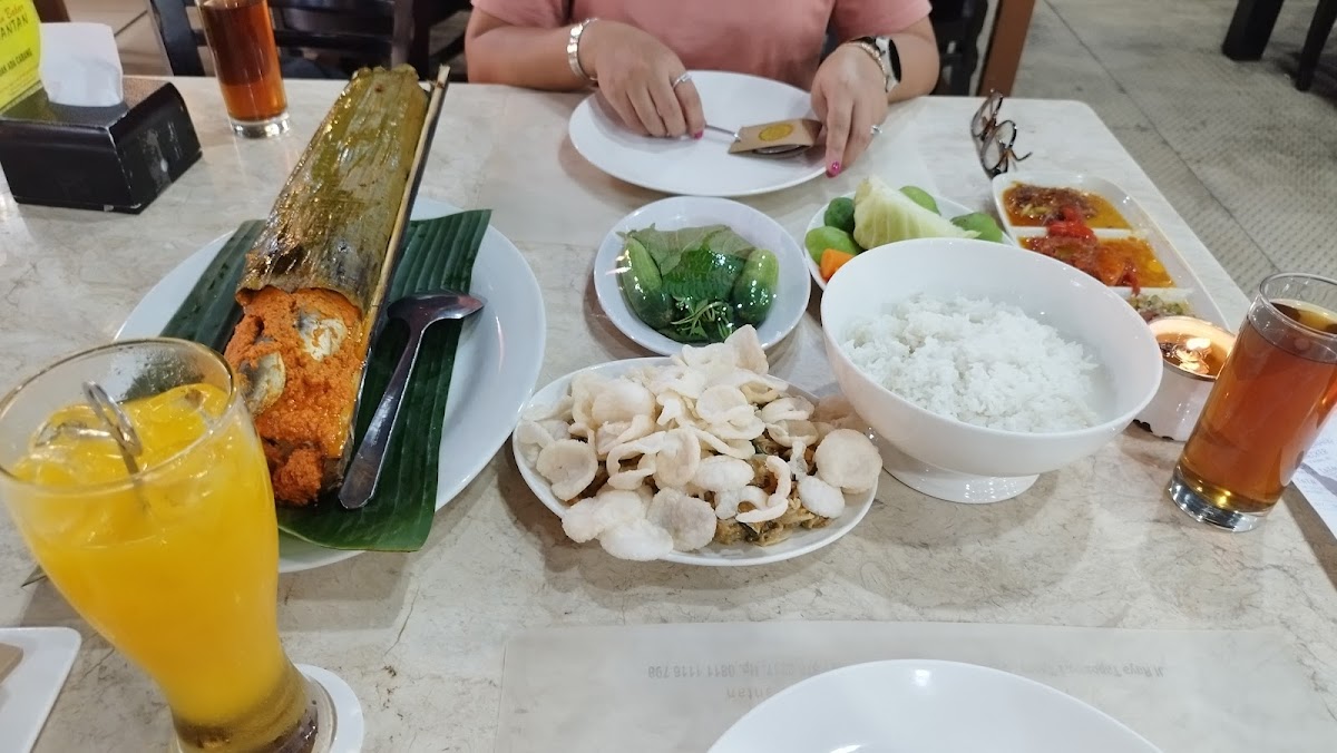 Oct 24 Sunday lunch 2 of us Its been about 12-14 years ago when we visited this restaurant. Now the place looks bigger and brighter and more beautiful. Since it was Sunday lunch time so it was pretty much crowded. We arrived at around 12pm, after we made the order then waited to be seated for about 10 minutes. Service was good but quite slow at the beginning maybe because of the crowdedness or the place. Foods all still exceptional. Especially their ikan bakar patin bambu. Their most famous and unique menu. Just be prepared all the foods came at the spicy taste. Do try the kalimantan ice coffee. Very refreshing and taste good.